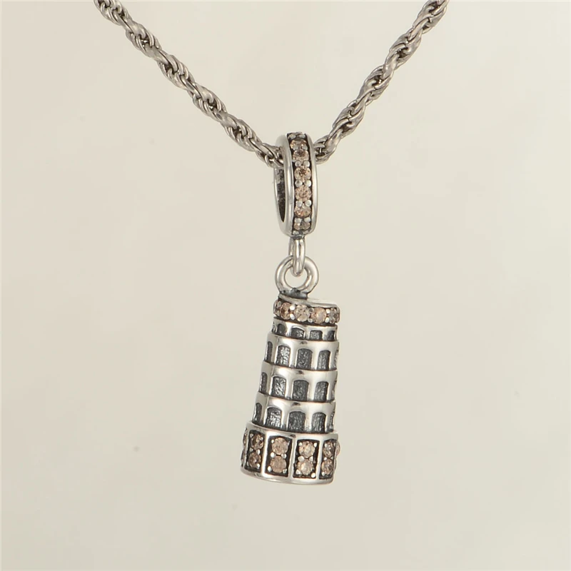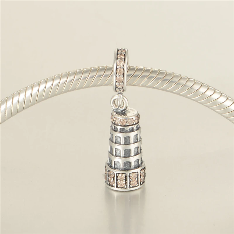 100% 925 Sterling Silver Majestic Tower With Pink CZ Fit Bracelet Necklace Authentic Jewelry Women
