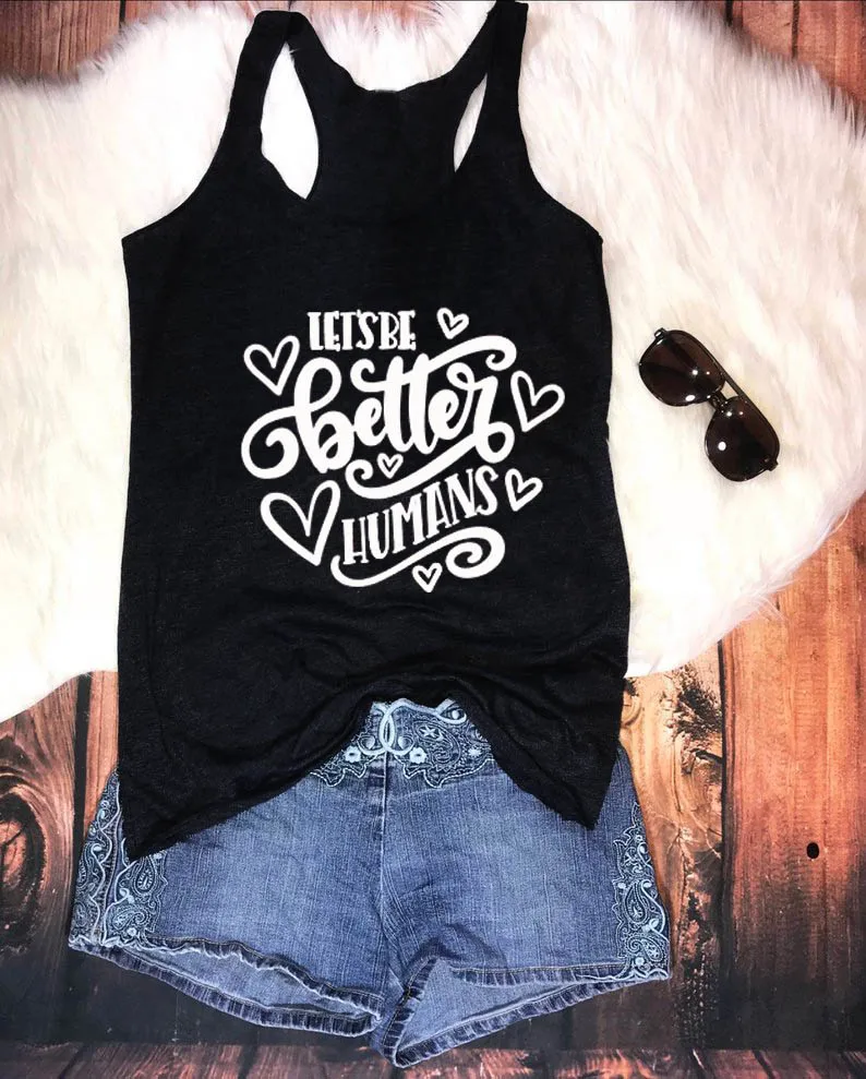 HOT SALE Vest Let's Be Better Humans Letter Print Women's Rights Feminist gift Tank Top Summer Harajuku Funn