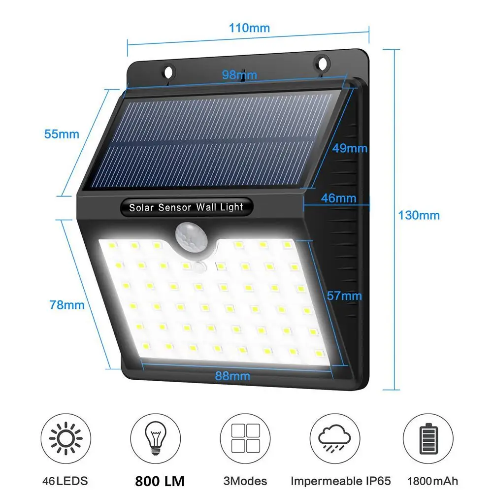 46LED Solar Energy Powered Wall Lamps Human Motion Induction Light IP65 Waterproof Outdoor Security