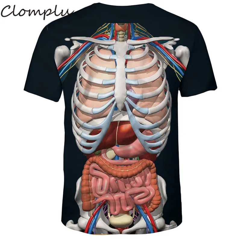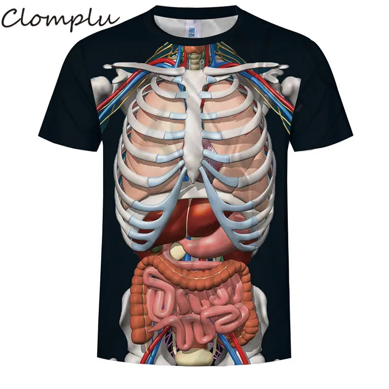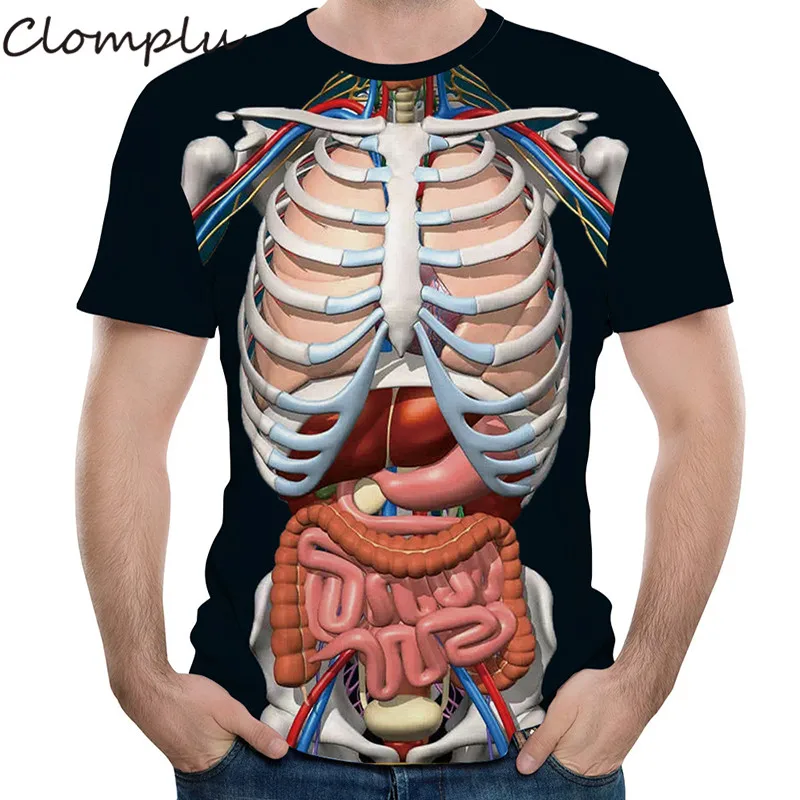 HOT Sale Clomplu Mens Tshirt Plus Size 3D Printed Human Organs Pattern Tops Funny T shirt for Man Fashion T-