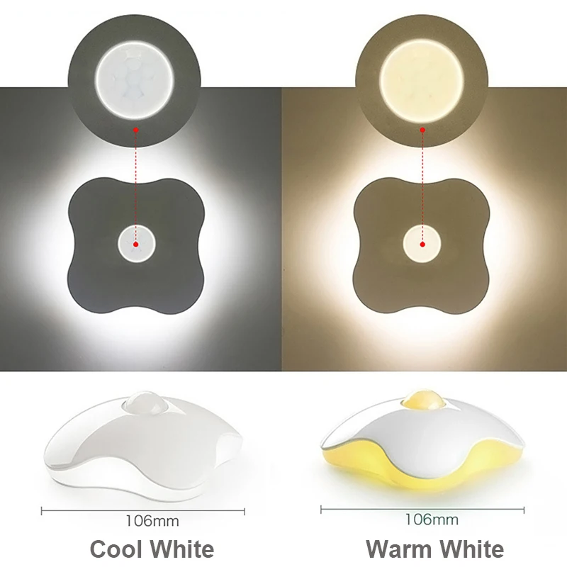 1pcs LED Sensor Night Light Lamps Four Leaf Clover Luminaria Motion Sensor PIR Intelligent Human Bo